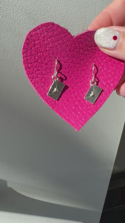 Sterling silver love letters on sterling ear wires. These love letters are castings of an original that I made out of wax. They're finished with a patina to highlight the details in the envelope. These little envelopes with tiny hearts make a great gift for Valentine's Day.